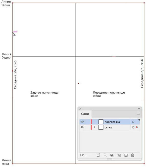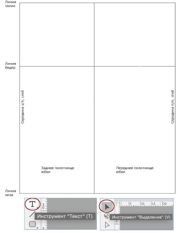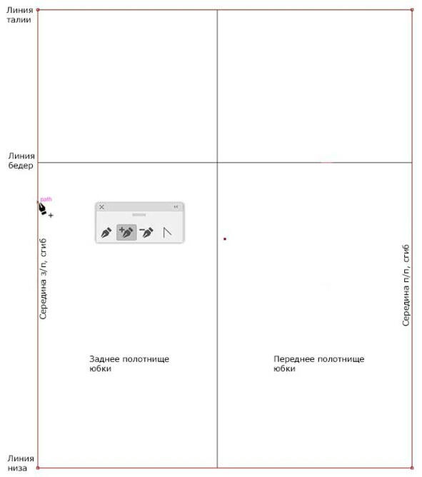 Рис. 10. Сетка для построения чертежа основы конструкции прямой юбки