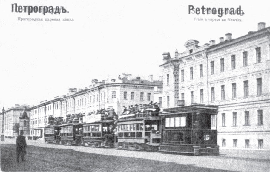 Размеренная жизнь располагавшегося на окраине города проспекта изменилась с открытием в 1881 году опытного движения по коночным рельсам Невской пригородной конно-железной дороги от Знаменской площади в селение Стеклянного завода, а затем и в деревню Мурзинку «паровой конки». Маленький локомотив чуть выше человеческого роста тащил два, а позже три и четыре коночных вагона с пассажирами, а иногда и один грузовой вагон. Удовольствие от езды «пароконки» портили дым и искры от локомотива. С 1913 года Невская пригородная линия перешла в ведение городских властей, которые предполагали заменить паровую тягу электрической, но это было сделано уже после Первой мировой войны.