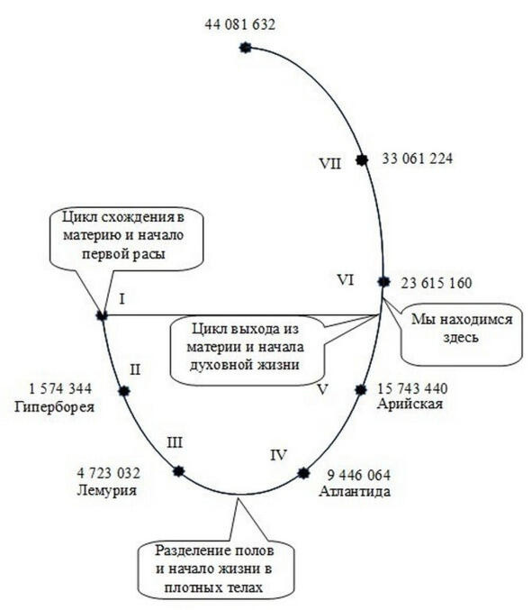 Ниже приведена схема эволюции рас. Для это нужно знать? Для того, чтобы понять на каком этапе эволюционного развития человечество находится сейчас. Смена рас является важнейшим историческим моментом. В такие моменты человечеству всегда давался мощный импульс к правильному эволюционному развитию. И этот импульс давался пророками и мессиями. Тот, кто внимал ему, продолжал свою эволюцию, тот, кто никого не слушал деградировал, опускаясь на огромные ступени эволюционной лестницы вниз, и даже, исчезая совсем.