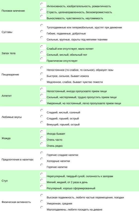 P.S. определить свою физоиологическую конституцию и тип телосложения по аюрведическим дошам, можно в следующей главе, пройдя простой тест.