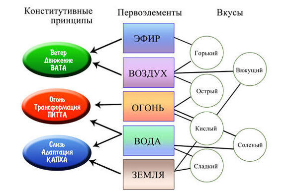 Ниже на таблице приведены вкусы, которые влияют (усиливают) действие той или другой доши. Причем, сладкий, солёный вкус носят сладкий, солёный характер воздействия, сладкий, солёный носят сладкий, солёный характер воздействия на организм.