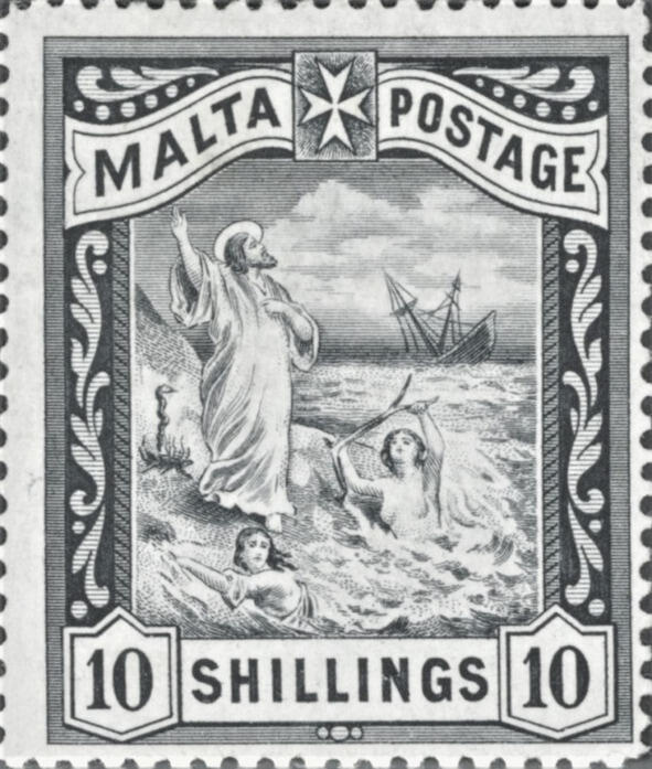 Наступным было выданьне пошты Мальты па карціне Густава Доры «Сьвяты Павал пасьля караблекрушэньня». За Сьвятым Паўлам ў вогнішчы зьмяя. Падзея адбылася пазьней, калі Апостал грэўся ля вогнішча і на яго напала зьмяя. «Але ён, абтросшы зьмяю ў вагонь, не зазнаў аніякае шкоды» (Дзеі 28:5).