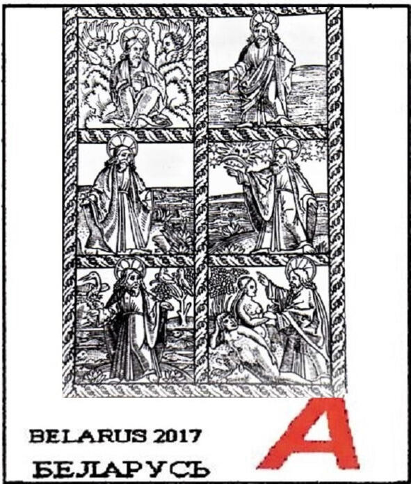 Стварэньне Сьвету, або шэсьць дзён сьветабудовы. Гравюра з Бібліі Скарыны, 1519. Праект маркі