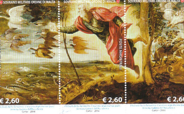Стварэньне жывёл (155152). Тынтарэта (1518\1519 1594). Галерэя Акадэміі, Вэнэцыя. Блёк пошты Мальтыйскага Ордэну, выдадзены ў 2014 годзе