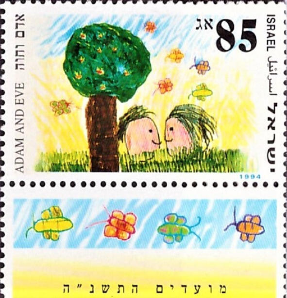 Адам і Ева. Ітай Коэн. Марка пошты Ізраілю, выдадзеная ў 1994 годзе