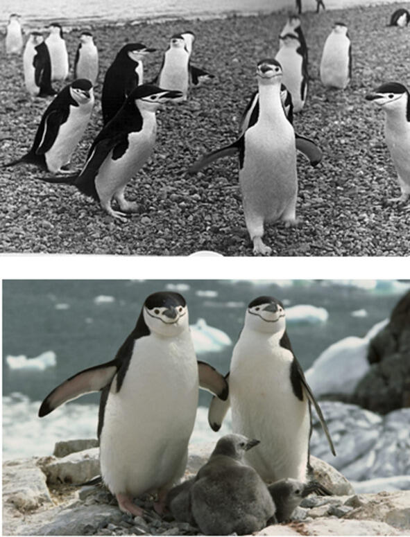 Антарктические пингвины в отличие от Аделей и Папуа спокойные, подвижные, общительные джентльмены.