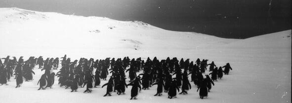 Когда идешь по берегу или по припаю вдали от станции в тихую и ясную погоду, иногда слышишь крик, похожий на зов человеческий. Останавливаешься в недоумении и оглядываешься по сторонам: кто кричит? Кто зовет? Позднее мы поняли это зов пингвина: или вожак собирает стаю или отставший от стаи просит дать ему информацию, куда направить свои стопы.