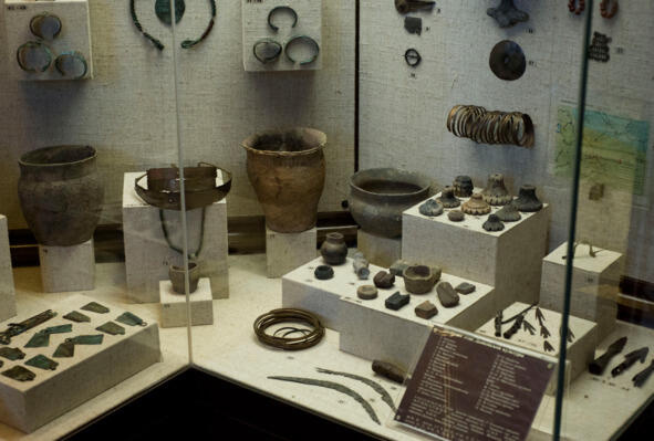 На месте городищ найдена лепная «текстильная» керамика, орудия из кости, глиняные грузики и таблички с точечным узором, изделия из бронзы и, в дальнейшем, железа, также римские бусины и скифские украшения.