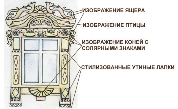 Прежде всего, древний финно-угорский след можно увидеть в резьбе на оконных наличниках, которая была направлена на оберегание и привлечение удачи. В Ярославской и Костромской областях такие наличники сохранились до наших дней, обратите внимание на следующие мотивы: