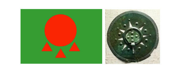 Проследить преемственность Мещеры от Рязано-окского народа позволяют археологические находки и, прежде всего, это большая нагрудная бляха. Именно она, с «гусиными лапками», сейчас изображена на флаге Mešerani mastor Мещерcкой земли, зелёный фон символизирует Мещерский лес.