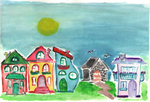 Эта история произошла в маленьком городе далеко-далеко отсюда. В этом городе было много домов. На крышах домов виднелись кирпичные трубы, из которых постоянно шел серый дым. В домах топили печи и горел огонь. У каждого дома была дверь, в которую можно было войти. И окна, из которых можно было смотреть на улицу, на проходящих мимо людей.
