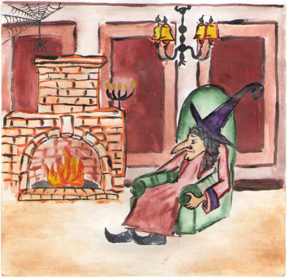 Ребята потеряли дар речи и стояли молча. Неожиданно, сидящий в кресле человек обернулся. Аня и Вова увидели старика с огромным носом. Его взгляд был полон злобы.