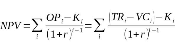 где OPi операционная прибыль в i-й год владения недвижимостью; Ki величина инвестиций в объект недвижимости в i-й год владения; TRi величина доходов от аренды в i-й год владения недвижимостью; VCi величина текущих годовых издержек в i-й год владения недвижимостью.