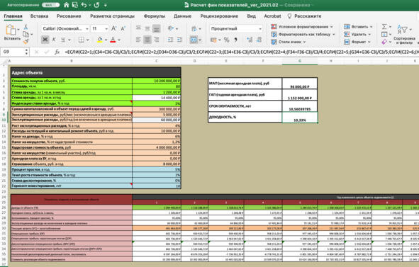 Вы задаете основные переменные такие как стоимость объекта, ставку дисконтирования, эксплуатационные расходы, процент простоя и прочие. И в результате получаете значения окупаемости и доходности: