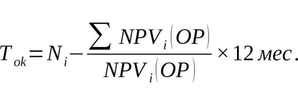 где Ni номер i-го года, в котором дисконтированная операционная прибыль нарастающим итогом становится положительной; NPVi (OP) величина дисконтированной операционной прибыли нарастающим итогом в i-й год владения недвижимостью; NPVi (OP) величина дисконтированной операционной прибыли от объекта недвижимости в i-й год владения.