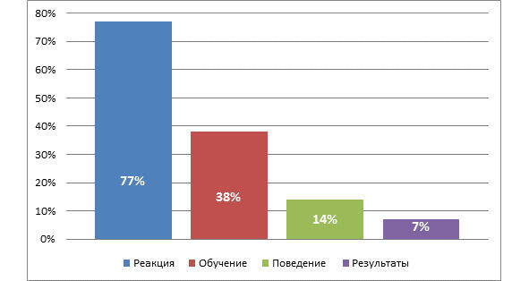 Главное в оценке четвертого уровня представлять себе конечный результат. Задача тренера реализовать ожидание заинтересованных лиц, т. е. окупаемость.