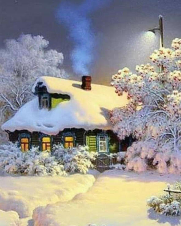 Дом, зима, пушистый снег,