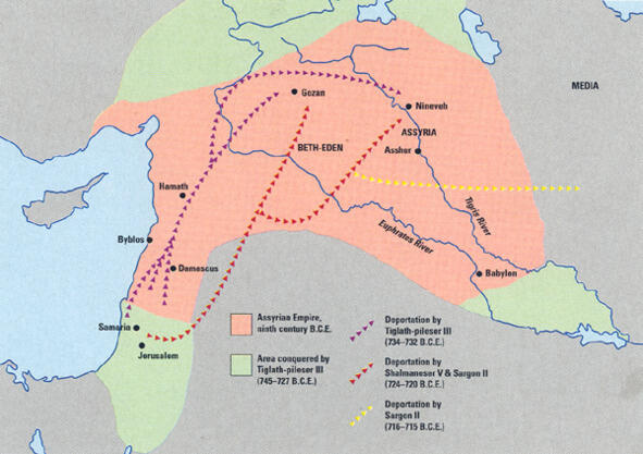 Judea (Jerusalem), Israel (Samaria) and Assyria (ancient capital Ashur), eighth century BC