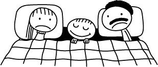 Иногда после прочтения Душкиных историй с чудовищами ему становилось СТРАШНО и тогда несколько ночей подряд он спал с родителями в одной кровати. Родители были не против потому что очень любили его.