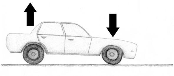 4. Engine braking on a rear-wheel-drive car. When the throttle pedal is released, firstly, the front axle is loaded and the rear is unloaded.