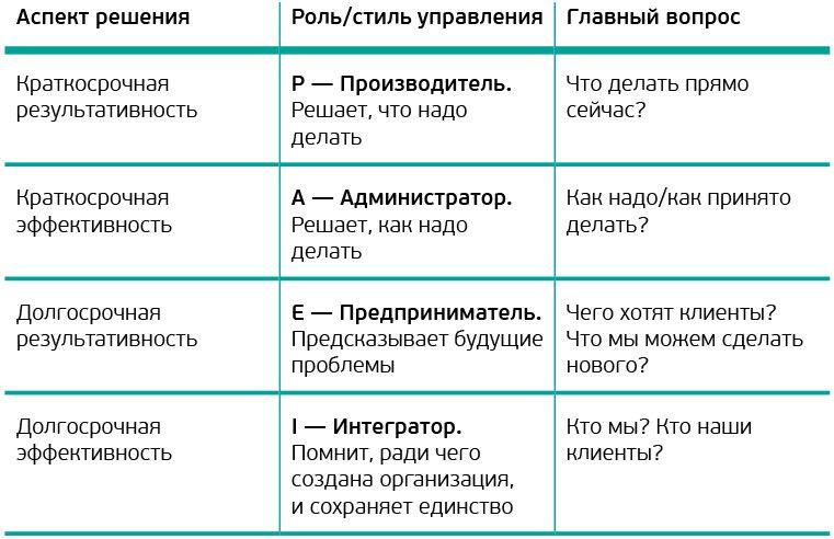 Но ни один человек не может совместить в себе все роли управления, поэтому идеального менеджера не существует. Основной парадокс человеческой жизни в том и заключается, что для принятия правильного решения нужны все роли. Каждая из них подходит к проблеме со своей точки зрения и решает отдельный ее аспект.
