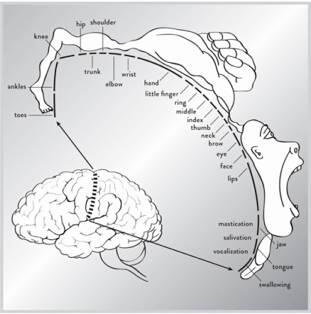 На рисунке 1 видно, что кисти рук и рот управляются крупными участками мозга, а нервные окончания, отвечающие за спину, малозаметны.