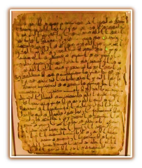 Рис. 4. Фрагмент страницы Корана, выполненной на пергамене(калиграфический стиль письма «хиджаз», Хиджаз или Сирия, 2-я полов.VIIв., The David Collection,Копенгаген, источникфото:https://commons.wikimedia.org/wiki/)