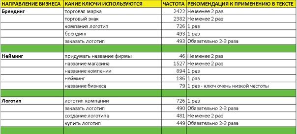 Для того чтобы достучаться до потребителя, мы должны использовать те слова и фразы, которые он ищет. На помощь вновь приходит инструмент wordstat.yandex.ru, где можно увидеть, что искали ваши будущие клиенты и что еще они забивали в поисковой строке. Создайте файл в Microsoft Excel, напишите несколько направлений вашей деятельности и присвойте каждому по 510 ключевых слов или фраз, максимально соответствующих тематике.