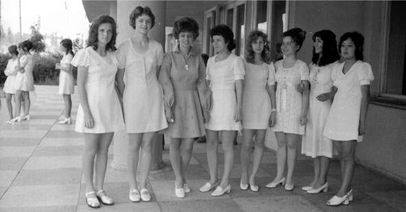 26 июня 1975 года. Наши девочки: Марьянка Шеффер, Ольга Шаблицкая, Вика Генкина, Света Слетникова, Света Ильина, Лена Жукова, Гуля Темиралиева, Аманка Досбаева.
