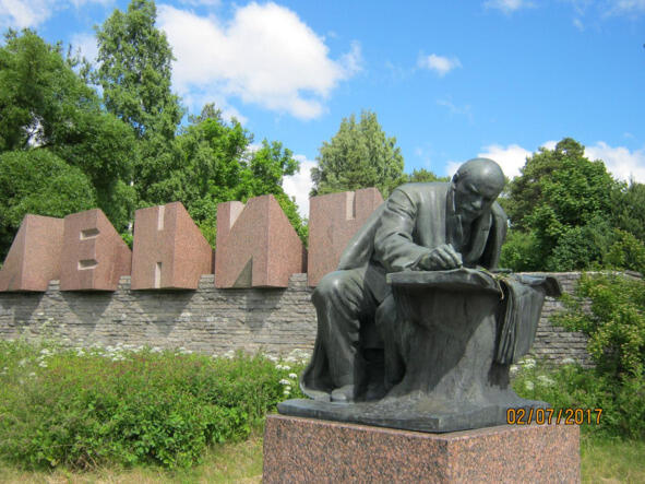 Памятник В. И. Ленину в самом начале дороги к музейному комплексу
