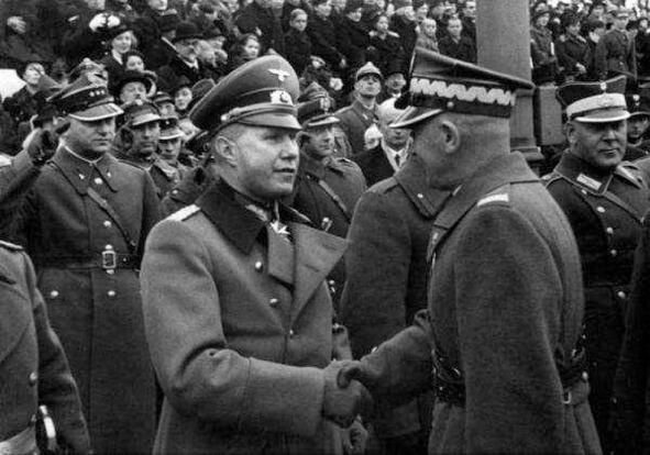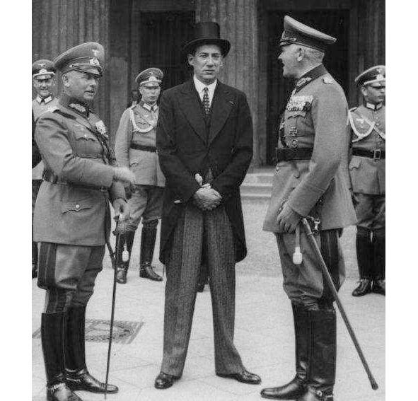 На снимке: польский министр иностранных дел Бек и немецкие генералы. 1938 год. «Дело сделано: Чехословакия ваша. Тешин наш!».