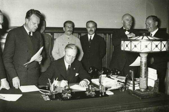 Поэтому нацистская верхушка решила пойти на временное улучшение отношений с СССР и, для того чтобы нейтрализовать его на время Польской кампании, выразила готовность заключить с ним договор о ненападении и гарантировать неприкосновенность его «сферы интересов» в Восточной и Северной Европе. Рассекреченные и опубликованные документы на выставке: «1939 год. Начало Второй мировой войны», неопровержимо свидетельствуют, что именно Третий рейх стал инициатором заключения пакта. Хотя Британская военная историография часто любит напоминать, что пакт Молотова-Риббентропа 1939 года фактически развязал руки германской военной машине. При этом на Туманном Альбионе обходят стороной Мюнхенское соглашение, подписанное Англией (она же Туманный Альбион) совместно с Францией, Италией и Германией годом раньше. Результатом этого сговора стал силовой раздел Чехословакии нацистами, который по устоявшемуся мнению многих исследователей и был прелюдией ко Второй мировой войне, потому что в дальнейшем Гитлер выполнит задуманную им ещё в 1925 году агрессию против СССР.