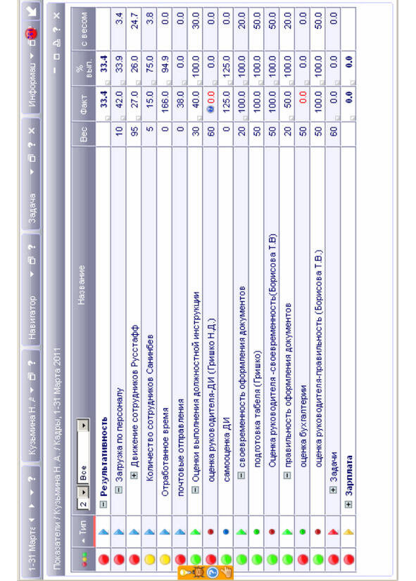 Синие показатели связаны со спецификой бизнеса: у нас очень часто меняется персонал, его количество, большая текучесть это большая нагрузка на отдел кадров. При этом предугадать это невозможно, поэтому появился показатель с небольшим весом «Нагрузка по персоналу».