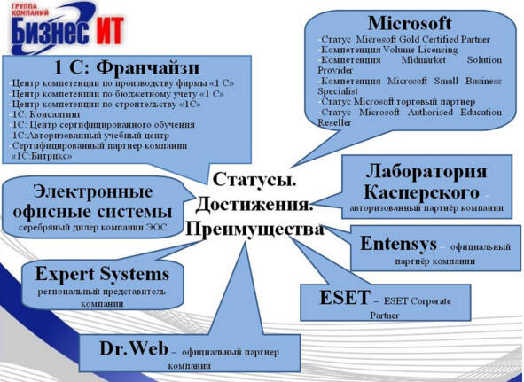 Илл. 1. О компании «Бизнес IT»: статусы, достижения, преимущества