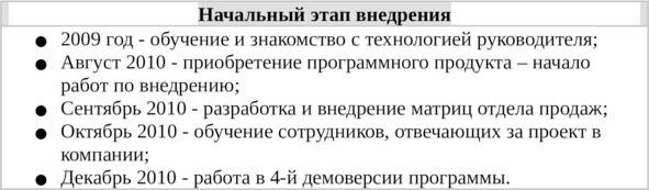 Таб. 2. Начальный этап внедрения системы Целевого Управления