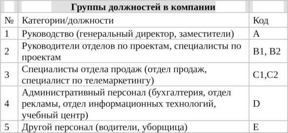 Таб. 3. Группы должностей в компании