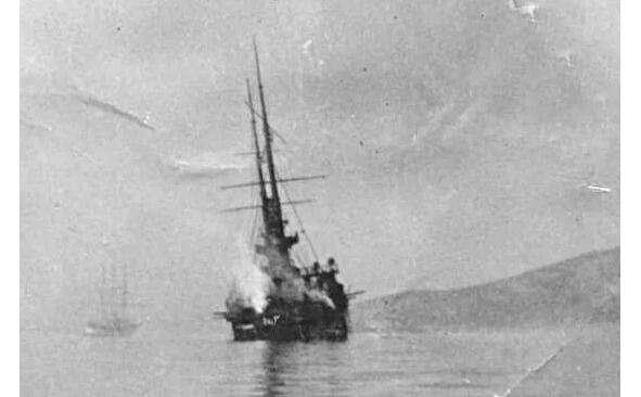 How was it really? «Varyag» goes along the fairway, and stumbles upon concentrated fire from two Japanese cruisers. The nasal rangefinder is destroyed almost immediately. However, even with this device, in ideal conditions for shooting, the gunmen of the «Varyag» in training firing a year earlier did not achieve a single hit by shells of the main caliber in the target shield. In total, out of 145 shells, only 3 hit the target. The officers of the Russian fleet care very little about this. At the same time, the artillerymen of the Japanese Imperial Navy, according to some sources, shoot off two barrels until they are completely worn out and, in any case, are considered heroes of their country. In addition, «Varyag» fires with armor-piercing shells, and the Japanese high-explosive fragmentation. The explosive content in the former is minimal. And the most offensive thing is that when firing from long distances, falling into water or a weakly armored hull, they simply do not burst. Zeroing in such conditions is impossible. Smoke from Japanese shells, even exploding in the water at a considerable distance from Russian ships, obscures observation devices and sights. Shrapnel, a blast wave destroy various mechanisms, disable or demoralize the crew. The Varyags propulsion system is in order. A breakthrough is still possible. But nevertheless, much to the surprise of the Japanese, the ship lays on the opposite course. It is followed by «Korean». Photo «Varyag» is out of action after being hit by eight or ten 152 mm. shells. The fire in the aft compartment will soon be extinguished