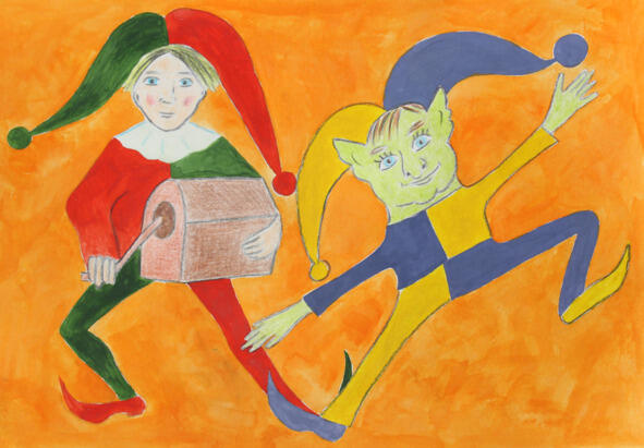 А я такой же костюм, но жёлто-лиловый, закружился на месте шарманщик. Тогда мы будем настоящими артистами!