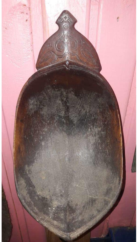 Поселок, о котором я рассказываю, расположился как раз на месте древнего стойбища исконных жителей нижнего Амура. Когда рыли под фундамент домов, то обнаружили в спрессованном, как камень, речном песке и мелкой гальке, прекрасно сохранившиеся, изделия, типа ладьи, выдолбленные из одного куска дерева. Что-то среднее между ковшом и тарелкой. Вот она: