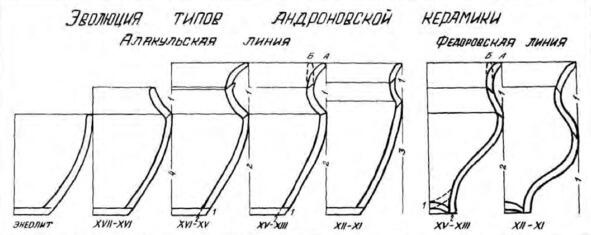 1. Эволюция керамики алакульского типа Приуралья. 2. Керамика федоровского типа. Уральский вариант. // Кузьмина Е. Е. Откуда пришли индоарии, 1994 г.