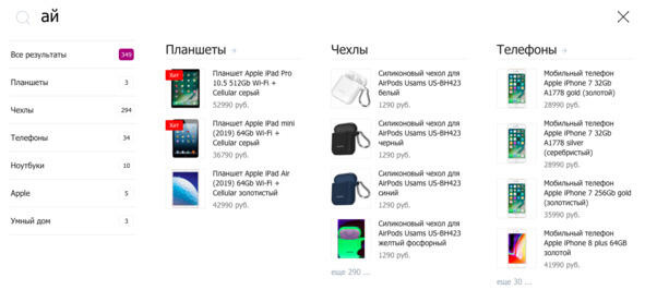 Очень удобная штука человек вводит запрос, а ему по мере набора уже начинают подсказывать варианты. Аналогичный инструмент есть у Яндекса и Google, вы наверняка его заметили. Это удобно и значительно уменьшает время на нахождение нужных клиентам товаров.