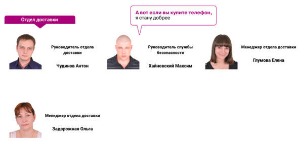 Среди них есть и начальник службы безопасности, которая занимается охраной наших курьеров. «Безопасники» вообще очень специфические люди, со своими особенностями. У нашего сотрудника, например, на фотографии получилось грозное лицо (см. скриншот ниже, он 2 слева).