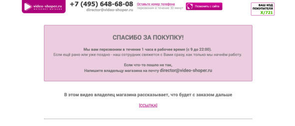 Кроме того, это решает сразу несколько задач. Первая это логическое завершение процесса покупки. Людям важно понимать, что они выполнили все, что от них требовалось, получили дальнейшие инструкции и могут спокойно расслабиться и ждать долгожданный товар.