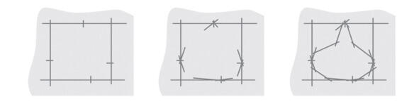 От найденных ранее четырех точек перехода построим по направлениям четыре отрезка. Там где получились явные углы, сгладим их, проведя еще две прямых.