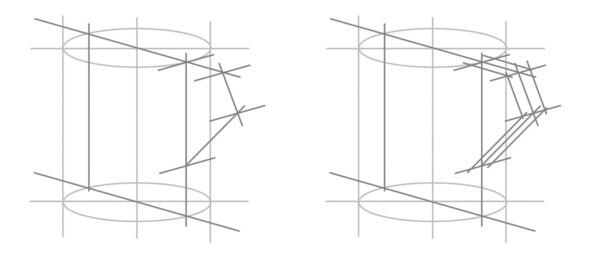 В этом же направлении построим линии переломов ручки до входа в цилиндр снизу.
