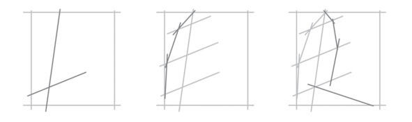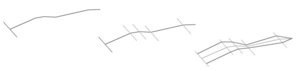 Затем по направлению берем с натуры линию обреза зубцов. Параллельно этой линии строим линии ширины. Откладываем ширину поровну от средней линии и соединяем полученные точки.
