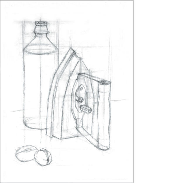 Перед началом занятия выполняем упражнение (см. занятие первое). На седьмом занятии мы выполним конструктивный рисунок постановки (натюрморта) с утюгом.