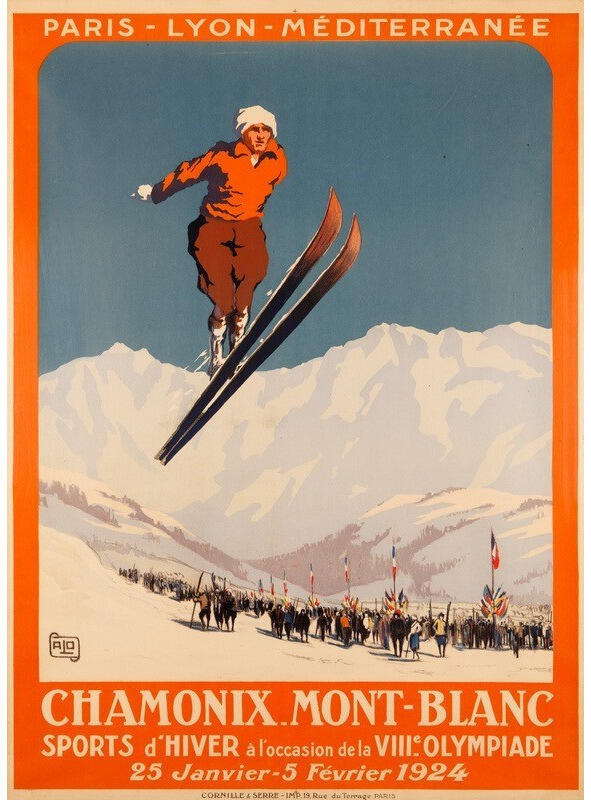 Плакат, посвящённый прыжкам с трамплина на Олимпийских играх в Шамони 1924 года