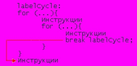 Эта проблема решается в Java использованием меток. Любая инструкция в программе может быть снабжена меткой, которая представляет собой содержательное имя, позволяющее сослаться на соответствующую инструкцию.