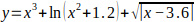y = pow(x, 3) + log(pow(x, 2) + 1.2) + sqrt(abs(x 3.6));